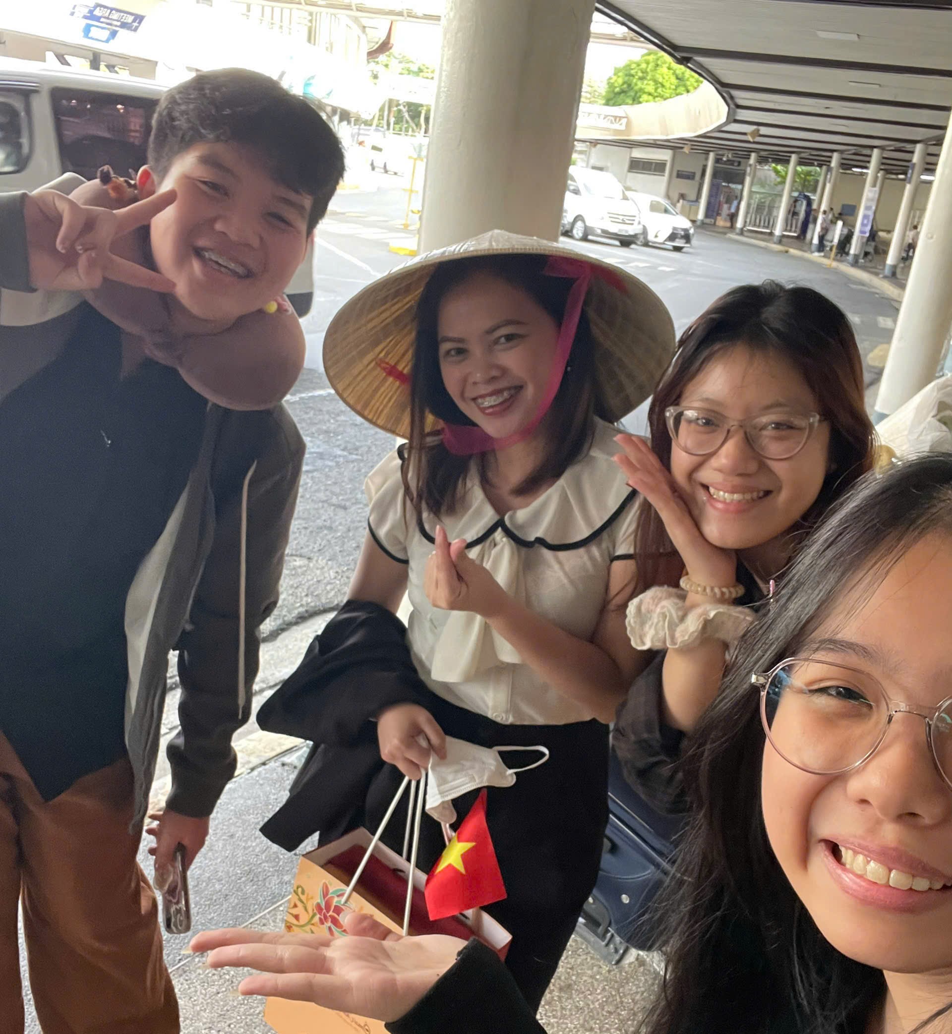 Hình 1. Ba sinh viên lần đầu gặp mặt cô Rachelle (DLSU-D) tại sân bay Ninoy Aquino - Manila Phillipines