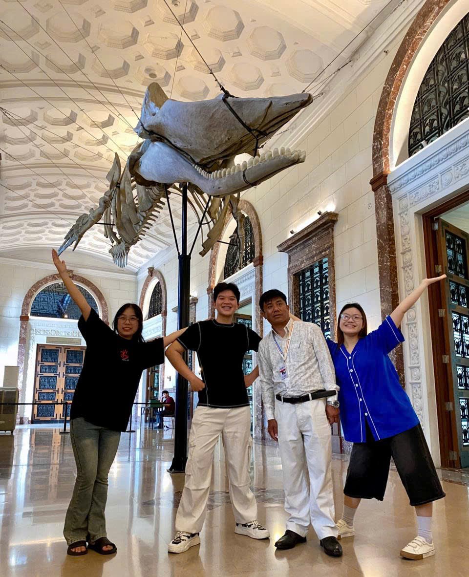 Hình 6. Ba sinh viên và thầy Dil Kumar Thakuri cùng nhau tham quan tại Bảo tàng Lịch sử Thiên nhiên - Manila