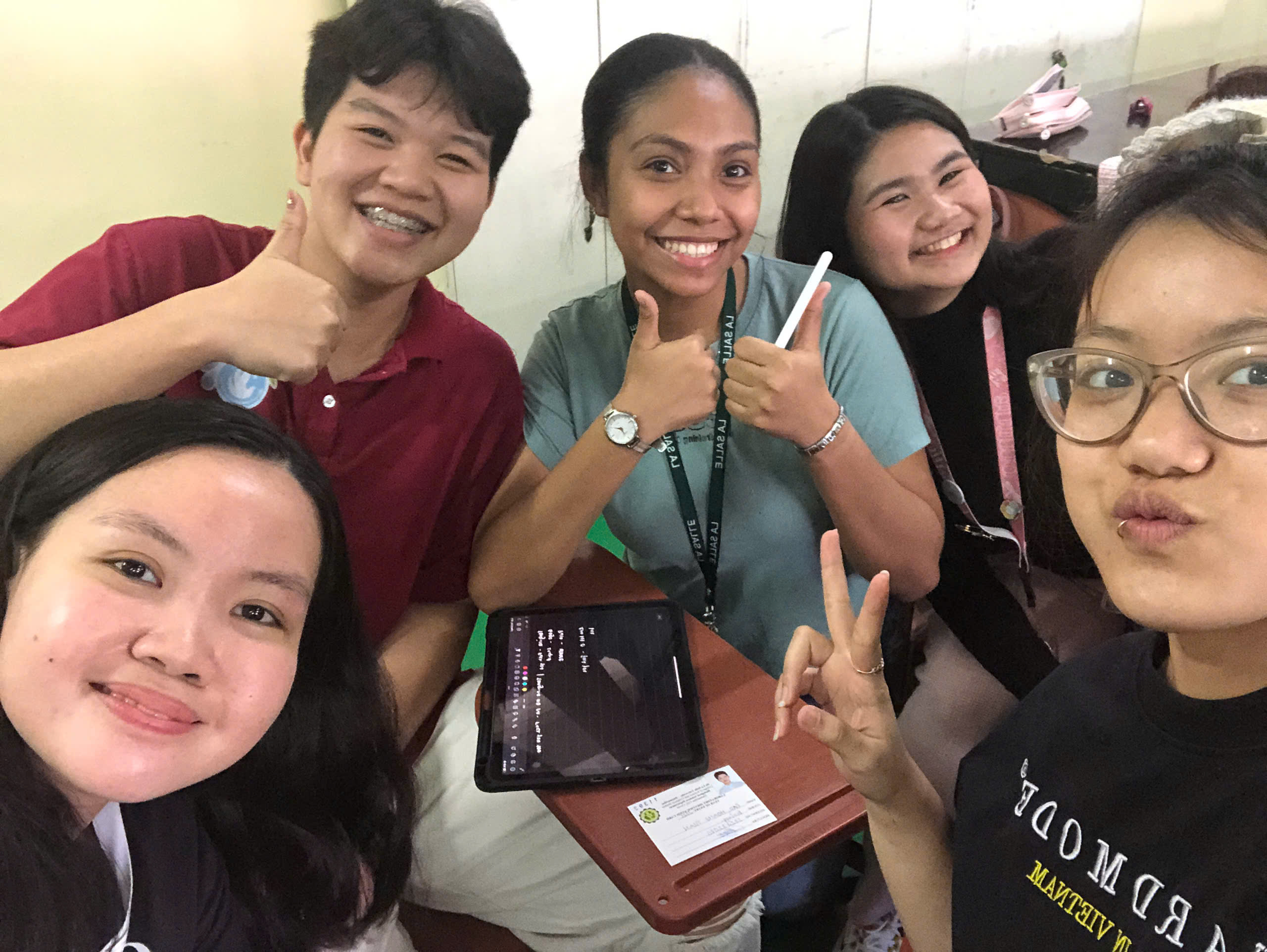 Hình 3. Các sinh viên LSA đang hướng dẫn một số từ ngữ tiếng Phillipines địa phương cho ba sinh viên